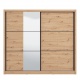 Kolekciu šatníkových skríň Debby si obľúbite najmä jej praktickému prevedeniu. Vďaka posuvným dverám môžete tieto skrine umiestniť do priestoru, kde je problém s klasickým otváraním. Z kolekcie Debby môžete objednať skrine rôznych šírok a odtieňov, so zrkadlom alebo bez zrkadla. Ponúkaná skriňa má dvoje posuvné dvere v dekore dub artisan so zrkadlom a šírku 242cm. Vnútorný priestor je rozdelený na bočné policové časti a uprostred je tyč na šaty s hornou policou. Vďaka tomuto priestoru môžete do skrine umiestniť veľké kabáty, bundy, košele, tak drobné oblečenie a iné doplnky. Čielka posuvných dverí majú deliace pruhy, ktoré dávajú skrini osobitý vzhľad.