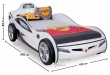 Rozmery postele auto SUPER sú 109x80x208cm (š, v, h), posteľná plocha postele je 90x190cm
