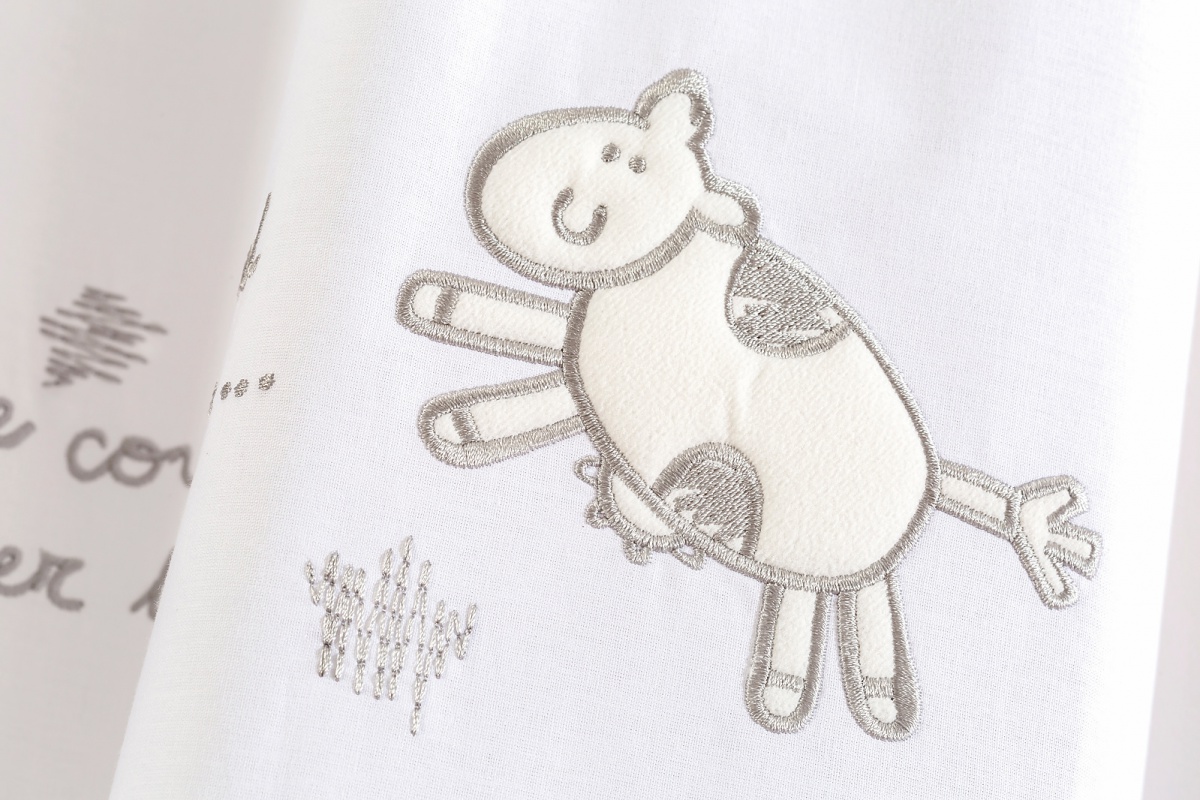 Výrobok sa skladá z jedného kusu luxusné textílie (na fotografii vpravo) lineárne delené na dve sivé časti, medzi ktorými záves osviežuje biely pruh s potlačou, prestupujúcim celou kolekciou Chloe. Tkanina je zo 100% polyesteru, čo zaručuje požadovanú vzdušnosť a ľahkosť. Záves môžete povesť jednoducho do koľajničky, plastové háčiky sú súčasťou balenia. Možno prať v práčke pri 30 stupňoch. Neodporúča sa používať bielidlo, sušenie v bubnovej práčke ani suché čistenie. Po dopriate by nemalo zostať vlhké v práčke. Žehliť na najnižší stupeň.
