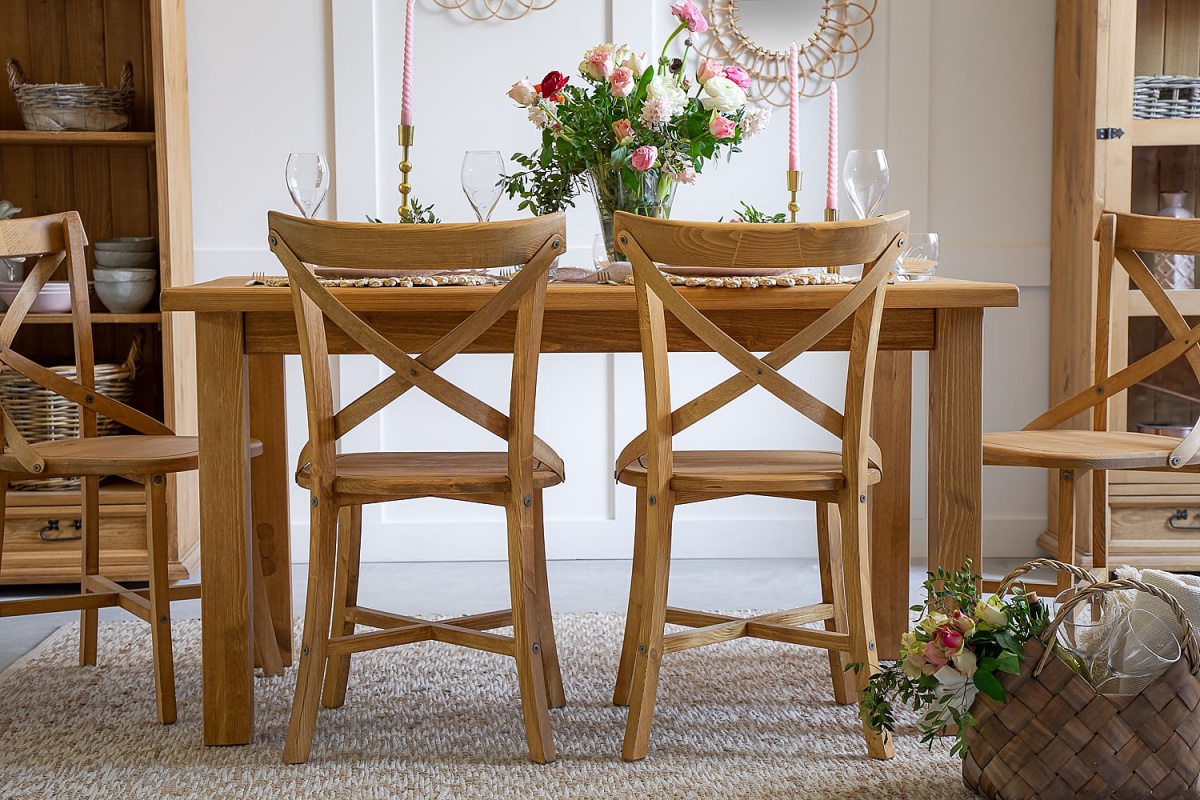 Pevný masívny borovicový stôl má odolnú a spoľahlivú konštrukciu. Skladá sa zo silných (8x8cm) jemne zdobených nôh ktoré sú veľmi stabilné. O tento sedliacky stôl sa skrátka môžete oprieť! Sedliacky nábytok ponúkame v niekoľkých odtieňoch morenia, od svetlo bielej až po temne čiernu. Ošetrený je pravým včelím voskom, čo z neho robí luxusný ekologický nábytok. Navyše môžete zvoliť tiež preferovaný druhý odtieň, ktorý sa použije na hornú dosku nábytku. Lakovaným morením hornej dosky sa stane vrchná doska ešte odolnejšie. Vzory si prezrite vo fotogalérii. Aj tento sedliacky nábytok je ručne vyrábaný a pri jeho výrobe je kladený veľký dôraz na detaily spracovanie. Vďaka ručnú prácu a masívnemu drevu je každý kus nábytku jedinečný. Ponuka nábytku z masívnej borovice je veľmi široká - pozrite si súvisiaci tovar nižšie alebo priamo kategórii "sedliacky nábytok". Zaujať by vás mohol tiež "rustikálny nábytok".