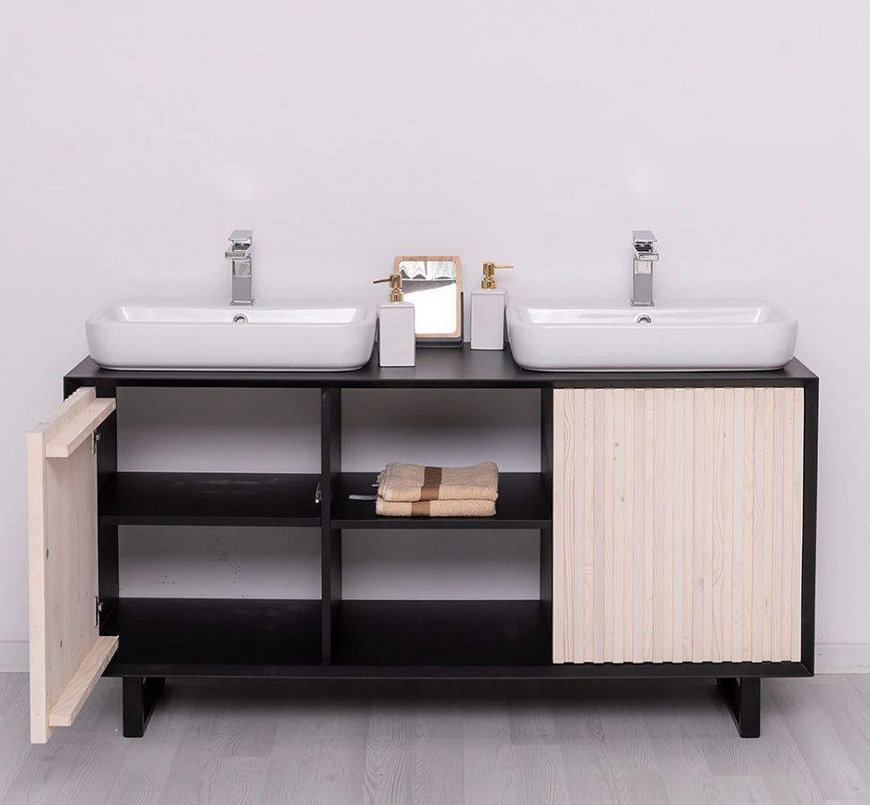 Kúpeľňová skrinka je vybavená 2 dvierkami za ktorými sa skrývajú dve police, ktoré dali vzniknúť priestranným priehradkám. Tie úplne s kľudom pojmú všetky kozmetické prípravky, fény alebo iné hygienické potreby a Vám tak zostane úplne prázdna a uprataná plocha okolo umývadla. Uprostred skrinky nájdete dve otvorené priehradky - ideálne miesto na odloženie uterák. Zadná časť celej skrinky je otvorená. Umývadlá, batérie či kovový výpust nie sú súčasťou a je potrebné ich zakúpiť samostatne. Vhodné umývadlo pre túto skrinku nájdete nižšie v súvisiacich produktoch. Ak preferujete tradičné prevedenie a poctivú prácu bez kompromisov, potom ste našli ten pravý kúsok. Tento výrobok je doručovaný v zmontovanom stave.