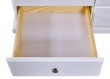 Masívna dvojdverová šatníková skriňa je elegantná na pohľad a neuveriteľne praktická vo vnútri. Z vonkajšej časti má dekoračné ryhy na dverách a je opatrená rustikálnymi úchytkami s medeným finišom, ktoré jej dodávajú šmrncovný nádych. Vnútorný priestor je rozdelený na police v jednej časti a šatníková tyč s jednou policou v druhej časti. V spodnej časti potom nájdete dve zásuvky. Šatníková skriňa je vybavená systémom soft-close, ktorý zaručuje pomalé a tiché dovieranie dverí. Povrch skrine je ošetrený bielym lakom, cez ktorý je ľahko viditeľná kresba dreva.