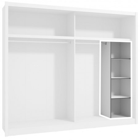 Set doplnkových funkčných políc, ktoré sú vhodné na zorganizovanie vnútorného priestoru do kompatibilných šatníkových skríň v šírke 245cm. Tie nájdete v súvisiacich produktoch. Police je možné obohatiť o zásuvky.
