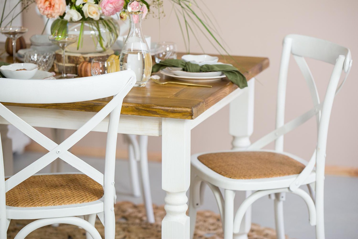 Pevný masívny borovicový stôl má odolnú a spoľahlivú konštrukciu. Skladá sa zo silných (8x8cm) jemne zdobených nôh. O tento sedliacky stôl sa skrátka môžete oprieť! Horná doska je dekoratívna zo skladaného dreva - viz.foto. Prikúpiť k nemu môžete tiež prídavné dosky, ktoré potom môžete ľubovoľne používať pre rozšírenie stola.