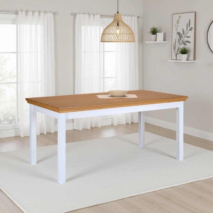 Jedálenský stôl Malcolm v prevedení biela/dub prináša do jedálne teplo