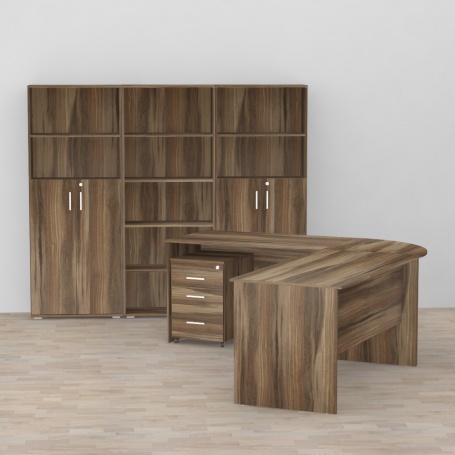 Praktická kancelárska zostava so skriňami, stolíkmi a kontajnerom.