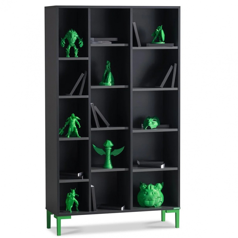 Dvanásť políc poskytuje dekoratívny priestor na vystavenie herného vybavenia. Police unesú až 25 kg a dajú sa jednoducho vybrať alebo prispôsobiť podľa potreby. 15 cm vysoké ABS nožičky sú navyše vhodné na použitie s robotickým vysávačom, čo uľahčuje údržbu a čistenie podlahy pod knižnicou. Táto knižnica je perfektným spojením funkčnosti a štýlu pre každú modernú izbu.