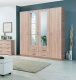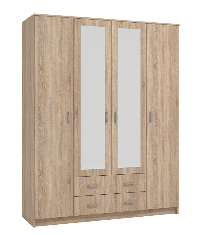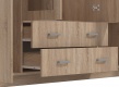 Kombinovaná skriňa ponúka svoj úložný priestor v časti so šatníkovou tyčou, kde nájdete aj hornú policu. Po stranách sa nachádzajú dve policové časti. Uprostred dolnej časti skrine nájdete dve samostatné zásuvky na drobné oblečenie. Nad zásuvkami sú na dvierkach umiestnené aj praktické zrkadlá, ktoré oceníte predovšetkým pri prezliekaní. Skriňa je krytá dvierkami so šedými úchytkami. Vyrobená je z lamina s hrúbkou 1,6 cm v dekore duba sonoma.