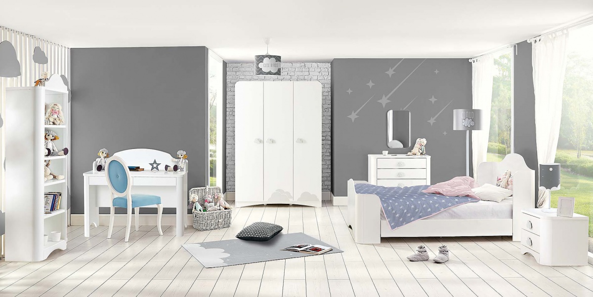 Detský nábytok Celeste v neutrálnej bielej farbe zapôsobí na váš malý poklad ako nebíčko.