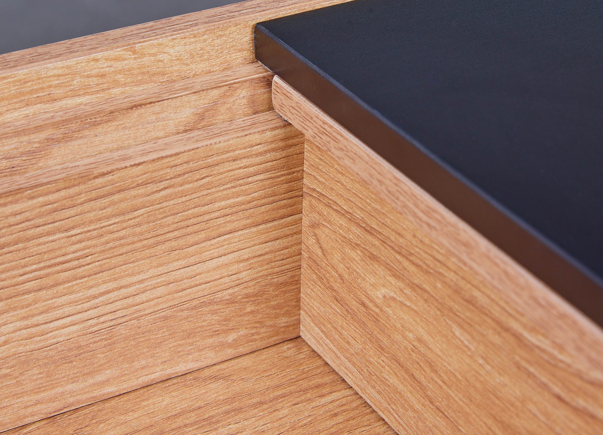 Spojením vysoko kvalitnej MDF dosky a kovových nožičiek vznikol konferenčný stolík industriálneho štýlu. Dekor duba artisan v ktorom je stolík vyrobený, je veľmi obľúbený av súčasných domácnostiach častý. Skvele ladí s čiernymi detailmi, čo sú v tomto prípade nôžky a jedna doska stola. Obe dosky stola je možné odsunúť, a tak odhaliť úložný priestor, ktorý sa v stole skrýva. Budete mať doma nielen štýlový, ale navyše aj praktický kúsok. Obdĺžnikový tvar je univerzálny, a tak padne naozaj kamkoľvek.