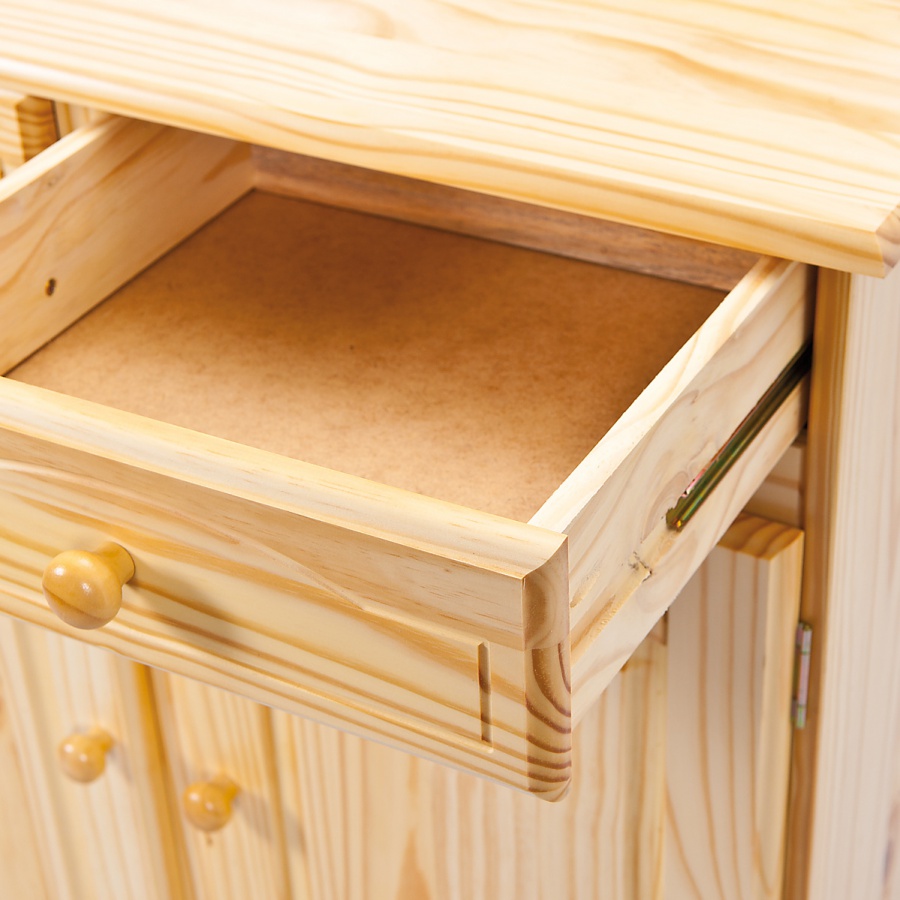Verili by ste, že aj tradičný prvok ako je kredenc môže vyzerať v moderných domovoch štýlovo a nadčasovo? S kolekciou Sorano je to možné. Za presklenými dvierkami sa skrýva priestor rozdelený policou, vďaka čomu vznikli dve široké priehradky. Za plnými dvierkami v spodnej časti nájdete priestor, ktorý je rozdelený rovnako ako hore. Dve zásuvky môžete ozvláštniť organizérmi a tým si úložný priestor ešte vylepšiť. Iste oceníte aj priestrannú hornú dosku. Praktickosť a štýl – táto kombinácia sa práve stáva realitou. Povrch kredenca je ošetrený prírodným lakom.