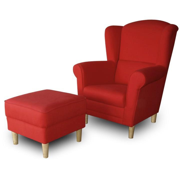 Křeslo ušák, s taburetem, látka červená, ASTRID