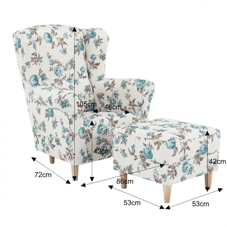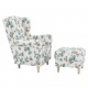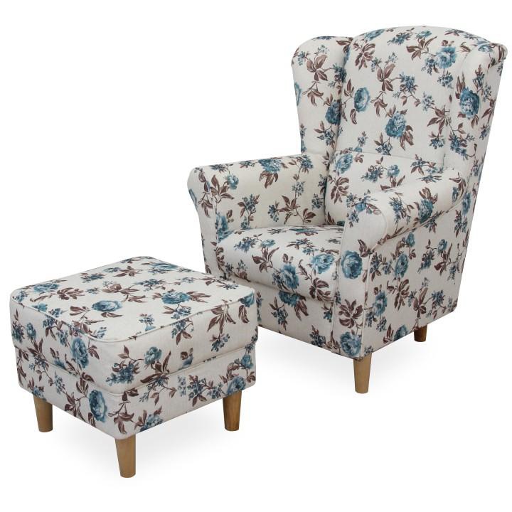 Křeslo ušák s taburetem, látka rose 14, ASTRID