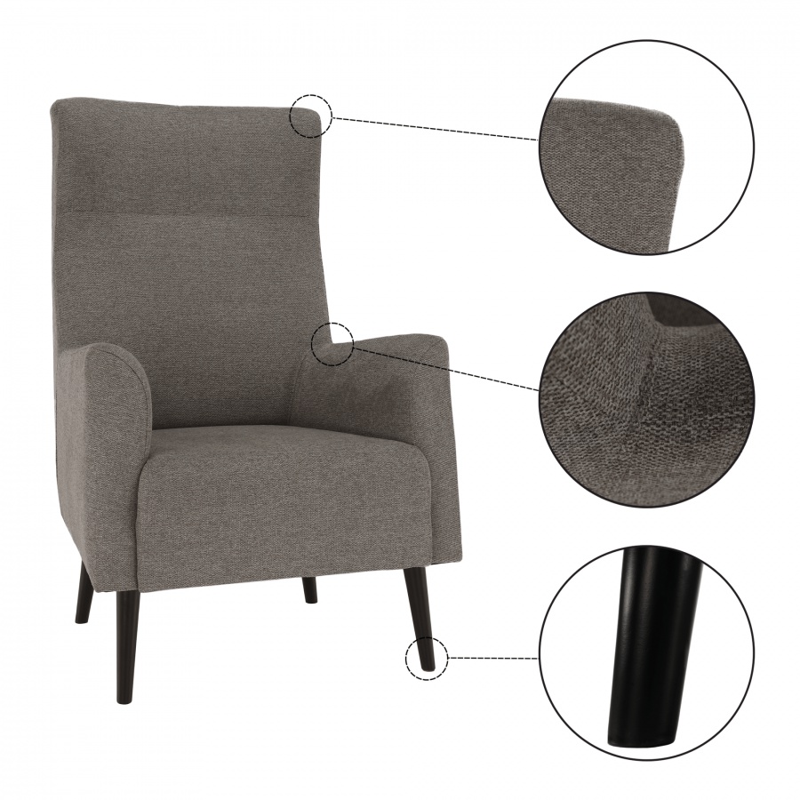 "Čo môžeš urobiť dnes, neodkladaj na zajtra," hovorí staré ľudové porekadlo. Preto po náročnom dni v práci si odpočinok zaslúžite, relaxujte v náručí komfortného kresla SAMY. Ušiaky radíme medzi pohodlné kreslá, pretože majú vysoké operadlo na chrbát, bočné opierky na hlavu, ale aj opierky na ruky. Dizajnové kreslo je celočalúnené kvalitnou látkou Matana v šedej farbe. Drevené nohy v čiernej farbe poskytujú kreslu potrebnú pevnosť a stabilitu. Maximálna spokojnosť pri sedení zaisťuje výplň sedadla, ktorá je kombináciou pružín Falista a peny T25.