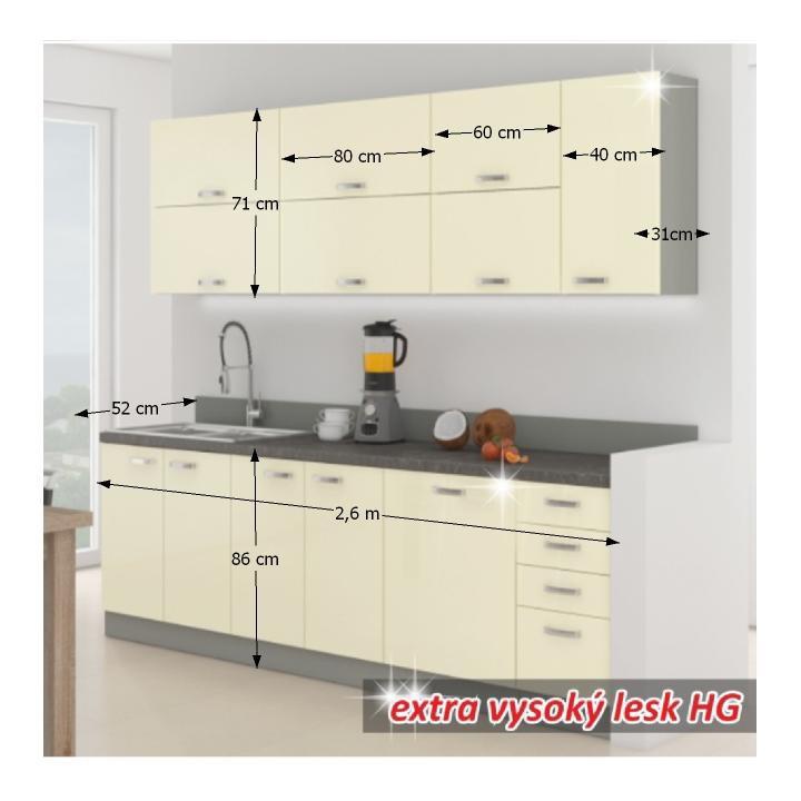 Kuchynská linka, Základná zostava, krémová / krémová vysoký lesk, PRADO