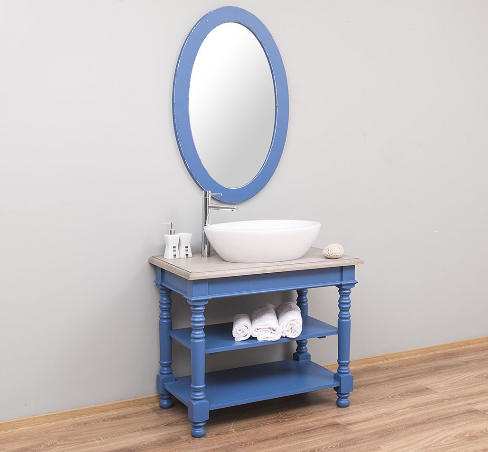 Vzdušný dizajn skrinky osvieži každú kúpeľňu, nehľadiac na to, v akom štýle ju máte. Rustikálny, ale stále veľmi nadčasový vzhľad je doladený vyrezávanými nôžkami, vďaka ktorému pôsobí veľmi luxusne. Skrinka je vybavená 2 širokými a priestrannými policami, vďaka čomu vynikajú otvorené priehradky. Milovníkov farebného nábytku potešíme touto veselou, ale luxusnou kombináciou. Modrá farbička je doladená hnedým dekórom a hoci môže pôsobiť trochu nezvyčajne, tak vedzte, že si túto kombináciu zamilujete.