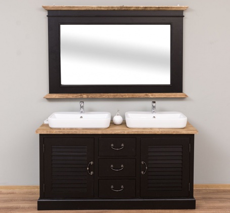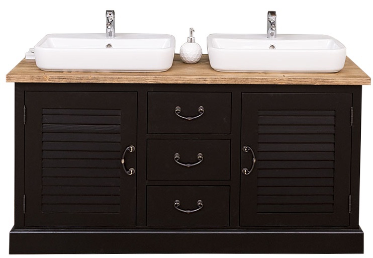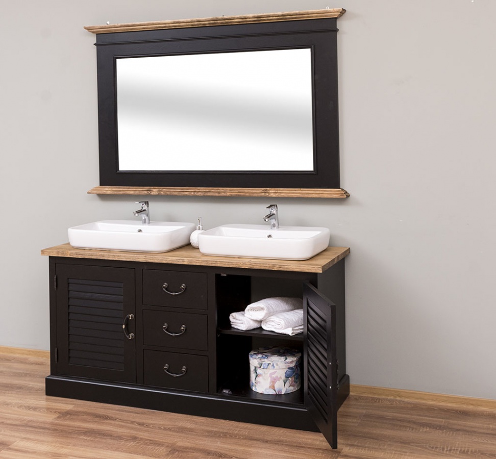 Nadčasové farebné kombinácie prepožičiavajú rustikálnemu masívnemu nábytku nádych elegancie a štipku moderného dizajnu. Priestranná kúpeľňová skrinka bola navrhnutá s ohľadom na potreby modernej domácnosti. Vďaka priestoru na 2 umývadlá už nebudete musieť čakať až na vás pri čistení zubov príde rad. V prostrednej časti skrinky nájdete tri zásuvky do ktorých ľahko ukryjete každodenné hygienické potreby. Z každej strany drží stráž dvierka za ktorými nájdete dve priestranné priehradky.
