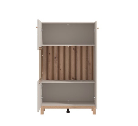 Jedným z hlavných rysov tejto vitríny sú sklenené dvierka a sklenené police, ktoré umožňujú vystaviť vaše obľúbené dekoratívne predmety, knihy alebo suveníry. Sklo pridáva na ľahkosti a vzdušnosti celého kusu nábytku, čo je ideálne pre menšie priestory, kde treba zachovať pocit otvorenosti a priestrannosti. Možnosť dodatočného osvetlenia navyše zaisťuje, že vaše vystavené predmety budú vždy vyzerať skvele, a to aj za šera či v noci. Osvetlenie sklenených políc vytvára príjemnú atmosféru a zdôrazňuje detaily, ktoré by inak mohli zostať nepovšimnuté.