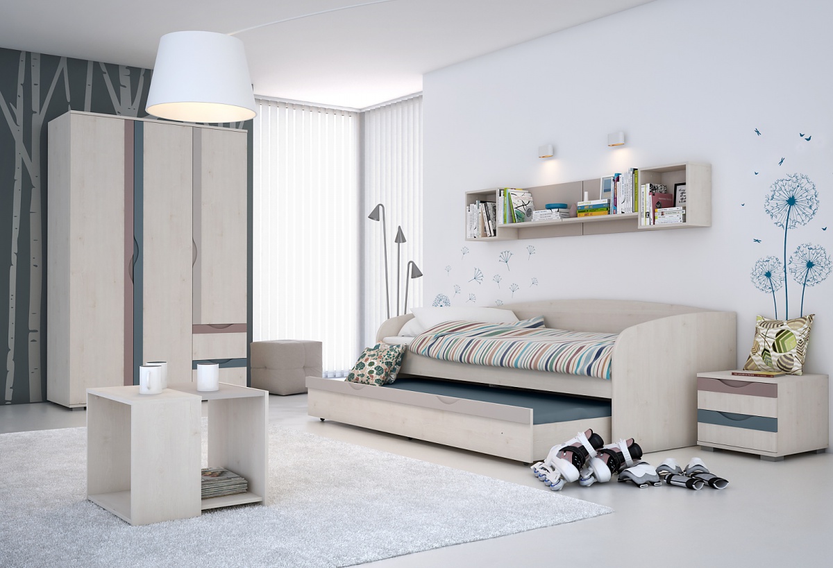 Kolekcia Alegria premení každú detskú alebo študentskú izbu na miesto plnej radosti a pohodlia, kde je každý detail premyslený tak, aby sa čo najviac prispôsobil potrebám a nárokom aj tých najnáročnejších zákazníkov. Pri navrhovaní tejto kolekcie bol braný ohľad na vytvorenie nadčasovej a modernej farebnej kombinácie. Vďaka spojeniu dekoru borovice polárnej a pastelových odtieňov ružovej, béžovej a modrej farby, sa to rozhodne podarilo. Jedná sa o nábytok v jemných farbách, ktorý poteší aj mladých dospelých, ktorí preferujú štýlové kúsky. Kolekcia je vybavená systémom soft close, ktorý zaručujeme tlmené dovieranie dvierok a zásuviek. Na kolekcii bolo použité lamino v hrúbke 16mm, 18mm a 25mm. Farebné prvky sú z MDF dosky a hrany sú opatrené páskou, aby nedochádzalo k mechanickému poškodeniu.