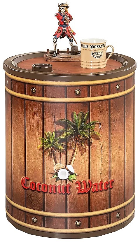 Stolík nielenže poskytuje odkladaciu plochu, ale dokonca ponúka aj úložný priestor. Ten je ukrytý pod vekom suda. Do úložného priestoru môžete ukryť prikrývky, hračky či pirátske poklady. Nočný stolík je inšpirovaný pirátskou tematikou, rovnako ako ostatný nábytok z tejto kolekcie.