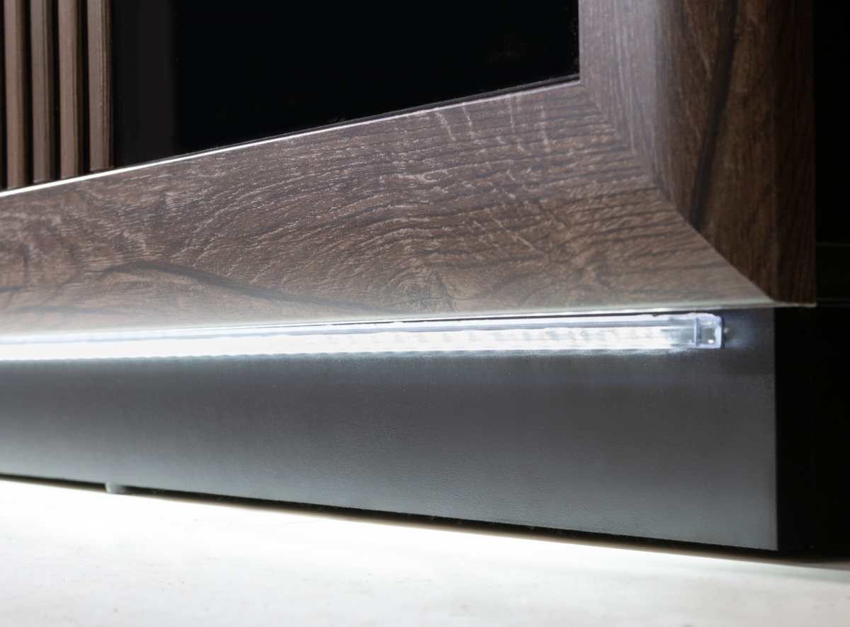 Kompletný set nábytku do obývačky. Zariadite tak naraz celú miestnosť. Uchváti vás moderný nevšedný dizajn v tmavom prevedení. Kombinácia čiernej lesklej farby, vstavaného LED osvetlenia a dekoru dubového dreva v odtieni duba ušľachtilého nastolí v domácnosti pohodovú príjemnú atmosféru.