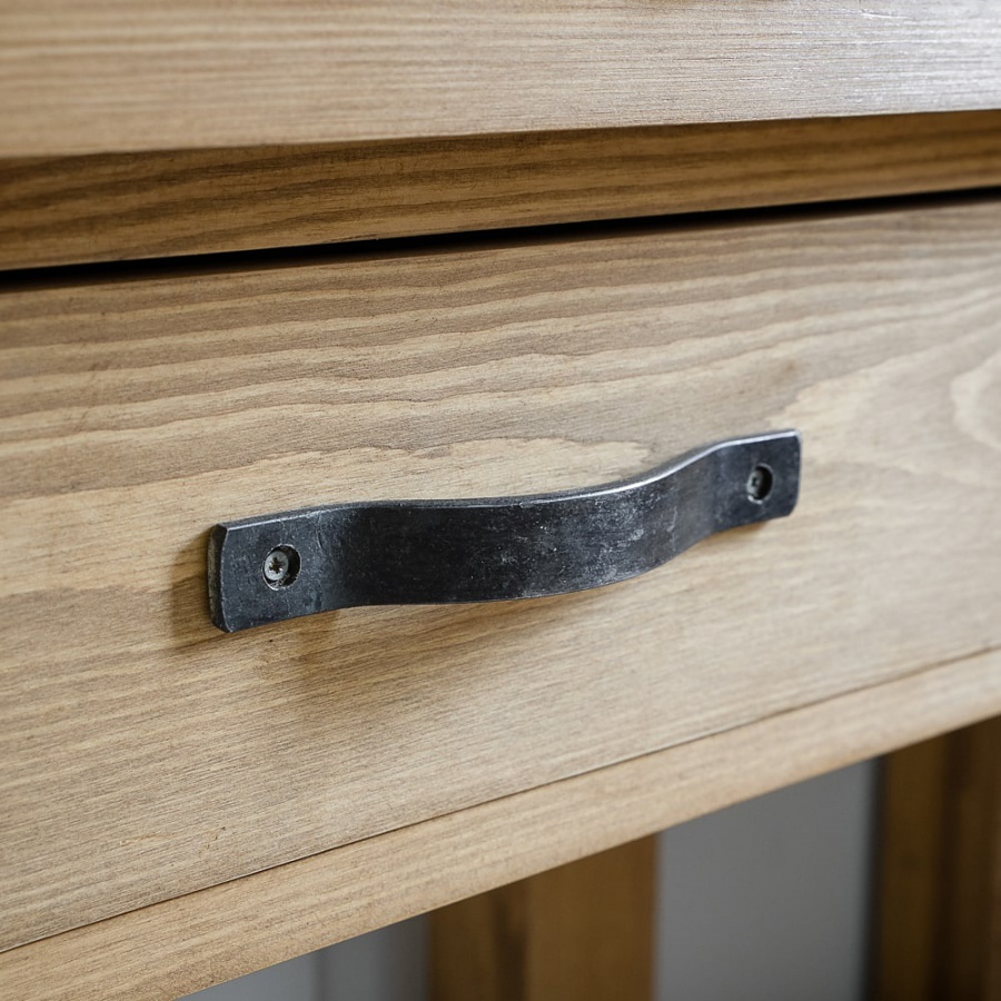 Tento kredenc vás očaruje! Kvalitné spracovanie a poctivé borovicové drevo sú zárukou dlhovekosti. Kredenc, vyrobený výhradne z masívneho borovicového dreva, je ošetrený prírodným včelím voskom, ktorý ho povyšuje na luxusný ekologický nábytok. Využitie nájde nielen v jedálni, ale aj v kuchyni, v hale či obývačke. Tento masívny kredenc splní aj tie najnáročnejšie očakávania. Skladá sa zo širokej komody, ktorá je 2 dverová s 2 zásuvkami a horného nástavca, ktorý je umiestnený nad hornou doskou komody. Nástavec má 2 presklené dvierka a 3 šuplíky. Úchyty sú kovové. Kovanie je ozdobené umeleckou patinou. Pôsobivý je tiež dekoratívne oblúk.