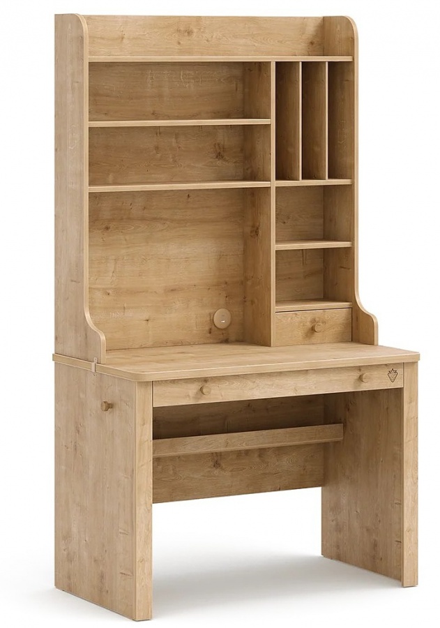 Písací stôl s vysokým čelom Cody kombinuje elegantný vzhľad prírodného dreva s praktickým nástavcom plným políc a priehradok. Ponúka priestrannú pracovnú plochu, ideálnu pre štúdium aj prácu na počítači. Vďaka pevnej konštrukcii a premyslenému úložnému priestoru je ideálnou voľbou do každej študentskej izby.