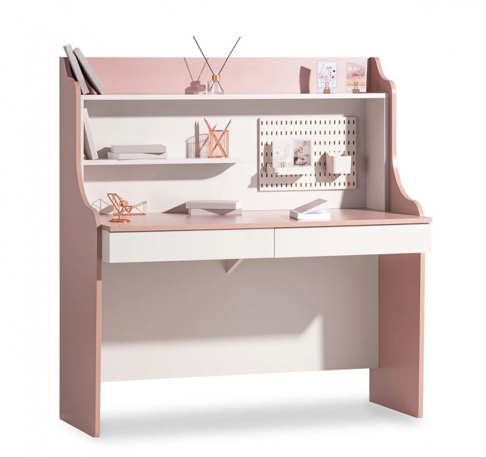 Písací stôl so zásuvkami Viviana - ružová, bílá