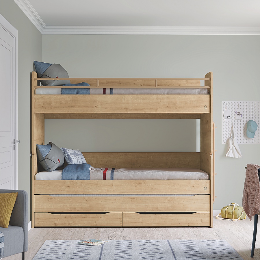 Posteľ Modular ponúka chytré riešenie spania aj pre menšie priestory. Možno ju ľahko použiť samostatne ako váľandu alebo ako hornú posteľ poschodovej či vyvýšenej postele. K posteli je tiež možné dokúpiť prístelku s úložným priestorom. Zaoblené hrany a rohy maximalizujú bezpečnosť vás aj vašich detí a príjemne ladí s laminom v dekore dubového dreva. Súčasťou postele je aj úzky box na drobné veci, tento box je možné umiestniť do výkrojov v oboch čelách postele. Veľkosť lôžka je 90x200cm a matrac nie je súčasťou postele a je nutné ho dokúpiť. Rošt postele je doskový zložený z troch samostatných dosiek, každá z dosiek má dva vetracie otvory na prísun vzduchu k matracu. Maximálna nosnosť postele je 130kg.