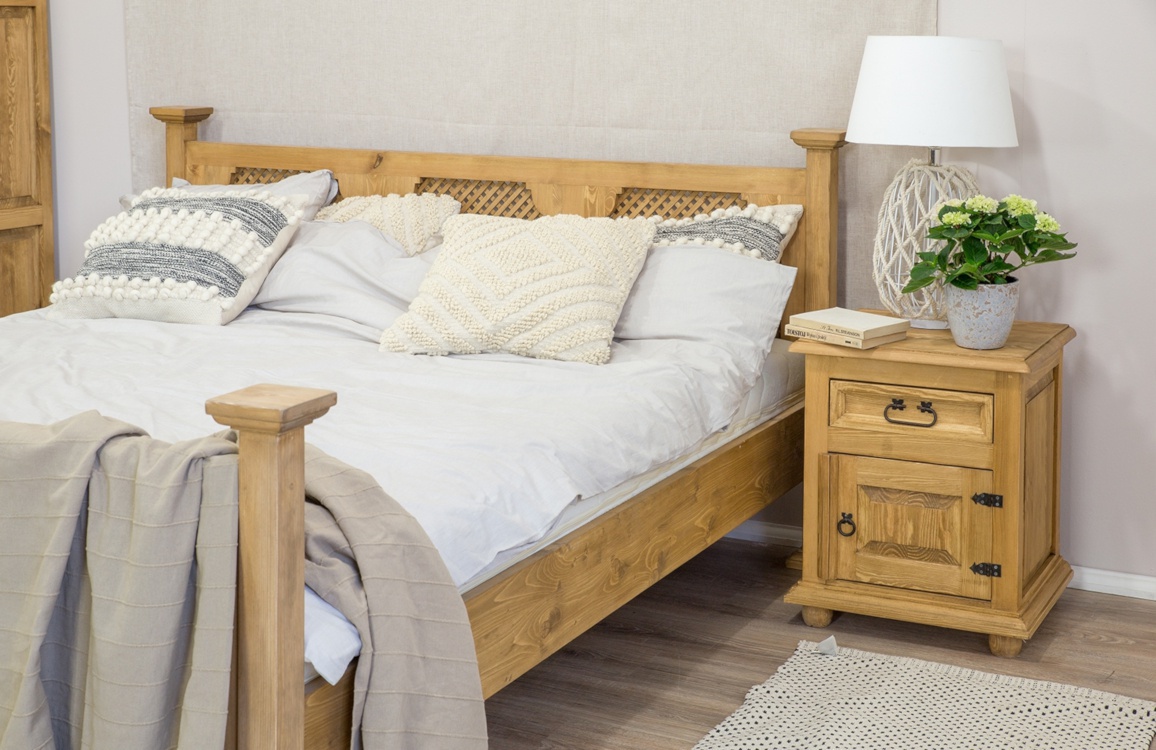Táto posteľ sa pod vami určite nerozpadne! Poctivá práca a masívne prevedenie postele sú zárukou absolútnej spoľahlivosti. Sedliacke postele sa tak hodia nielen do spální, ale nájdu uplatnenie aj v izbách pre hostí, detských a študentských izbách. Vďaka kvalitnému borovicovému drevu a robustnej konštrukcii je posteľ vhodná aj pre vysoké zaťaženie. Sedliacky nábytok ponúkame v niekoľkých odtieňoch morenia, od svetlo bielej až po tmavo hnedú. Ošetrený je pravým včelím voskom, čo z neho robí luxusný ekologický nábytok. Výrazným prvkom postele sú prelamované mriežky na prednom a zadnom čele, ktoré dodávajú jedinečný vzhľad. Vyššie čelá sú rustikálne zdobené. Výška od zeme je 26 cm.