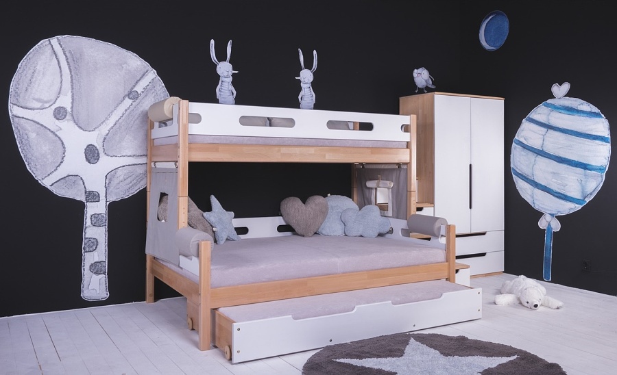 V detskej izbe sa bezpochyby osvedčí praktická prístelka. Vytvoríte vďaka ďalšie spacie lôžko pre dieťa. Prístelka je tiež ideálná pre príležitostne prespanie návštevy. Prístelku odporúčame najmä k posteliam z kolekcie Benjamin Bubbles. Prístelka ponúka výber morenia/olejovania a farby čielka.