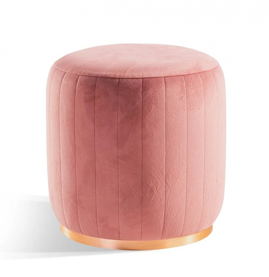 Puf Khalisa je elegantný doplnok k toaletnému stolíku aj do spálne. Valcový tvar, prešívaný zamatový poťah a zlato-ružový okraj pri základni dodávajú interiéru luxusný nádych. Ideálne zapadne do každého dievčenského priestoru!