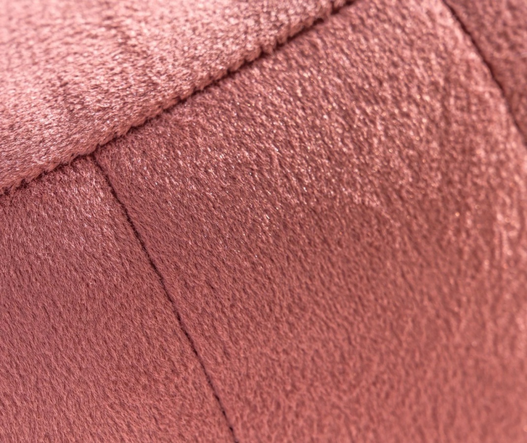 Puf Khalisa premení vašu beauty zónu na harmonické a štýlové miesto. Moderný valcový dizajn vyniká zvislým prešívaním a jemne lesklým čalúnnickým zamatom zo 100 % PES, ktorý je mäkký na dotyk a pôsobí útulne. Zlato‑ružový okraj pri základni pridáva sofistikovaný akcent, ktorý krásne ladí s iným nábytkom.