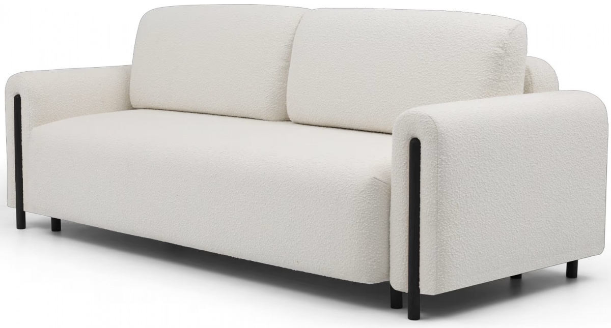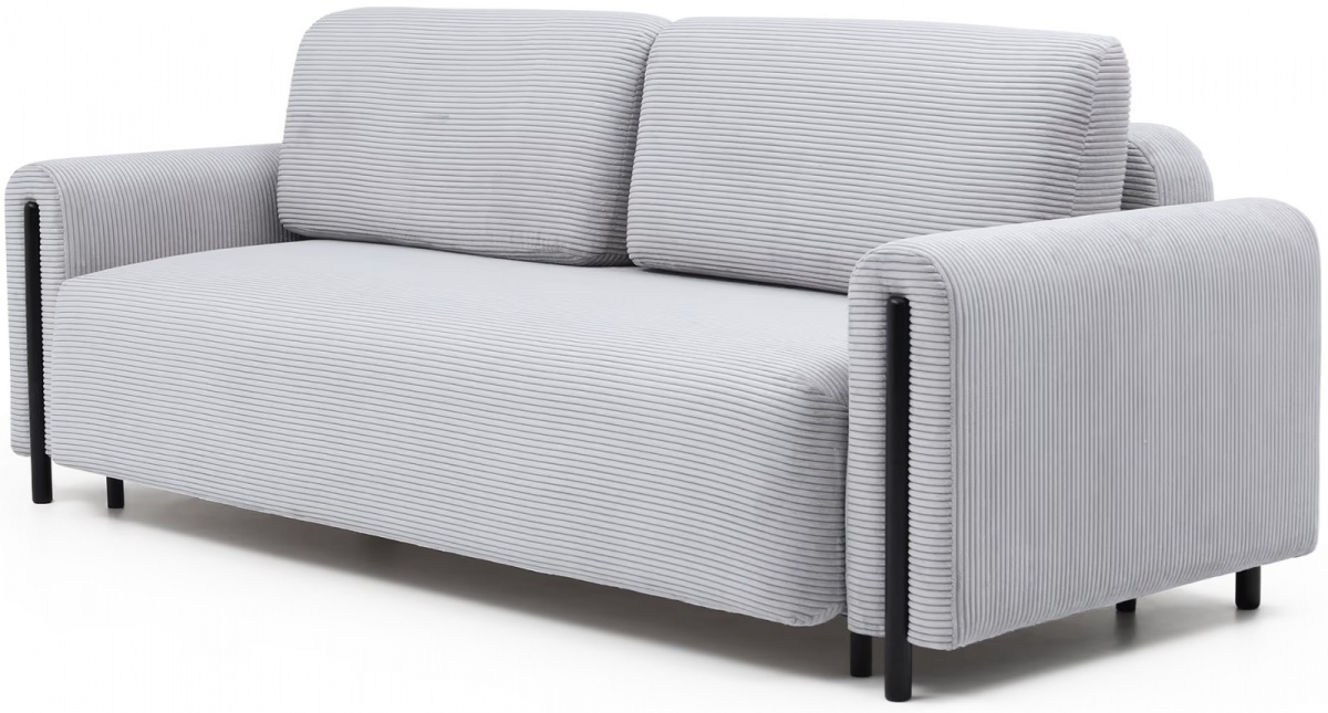 Stabilný rám z borovicového dreva a celková nosnosť 250 kg svedčia o robustnej konštrukcii. Voľne stojace prevedenie s čisto čalúneným chrbtom vám umožní umiestniť pohovku do priestoru, nielen k stene. Masívne drevené nohy s výškou 12 cm v elegantnej čiernej farbe opticky odľahčujú korpus a zároveň uľahčujú upratovanie pod sedačkou, vrátane práce robotického vysávača.