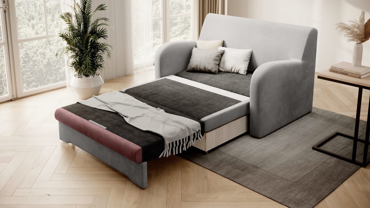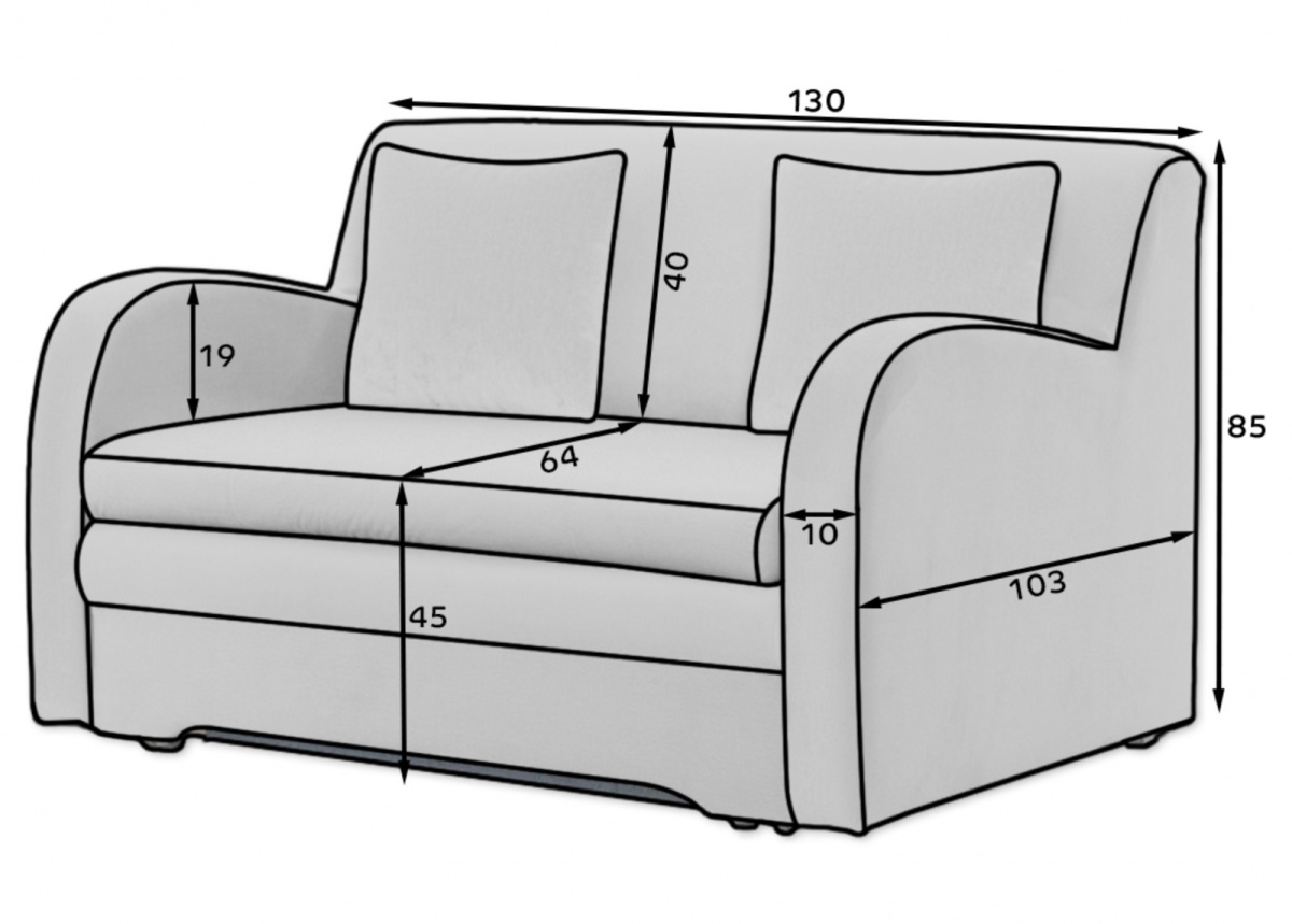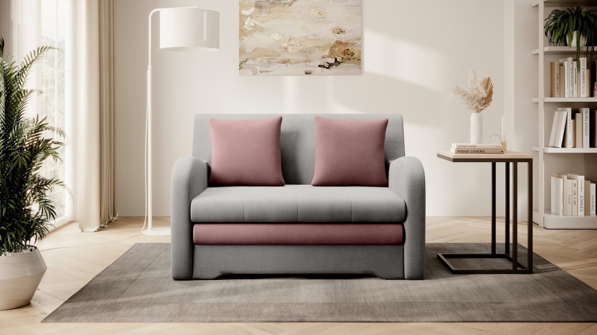 Rozkladacia pohovka Adriana je múdra dvojmiestna pohovka do menších priestorov, ktorá šetrí miesto a nestráca na komforte. Šírka 130 cm, výška 85 cm a hĺbka 103 cm z nej robia ideálnu voľbu do garsónky, bytu pre študentov, pracovne aj hosťovskej izby. Sedák so šírkou 111 cm, výškou 45 cm a hĺbkou 64 cm pohodlne usadia dve osoby s celkovou nosnosťou 160 kg.