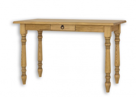 Pevný masívny borovicový stôl má odolnú a spoľahlivú konštrukciu. Skladá sa zo silných nôh, ktoré sú jemne zdobené a zvádzajú k pohladeniu. O tento stôl sa skrátka môžete oprieť!