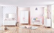 Dvojdverová skriňa Flamenco si získa srdiečko vašej malej dcéry hneď pri prvom pohľade, zaslúži sa o to kúzelný vzhľad s nádherne zladenými farbami. Skriňa pokrýva elegantná biela farba, ktorá je na hornej a spodnej doske príjemne doplnená ružovou farbou, a v ružovej sú aj úchytky na dvierkach a šuplíkoch. Hrátky s dizajnom sa prejavujú aj na moderných líniách, zaoblených krajoch vpredu a na štýlových nôžkach.