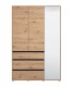Spodná časť skrine obsahuje 3 zásuvky, ktoré sú ideálne na uloženie drobnejších predmetov, ako sú doplnky, spodná bielizeň alebo iné osobné veci. Tieto zásuvky sú navrhnuté tak, aby boli ľahko prístupné a zároveň diskrétne, čo prispieva k celkovému elegantnému vzhľadu skrine.