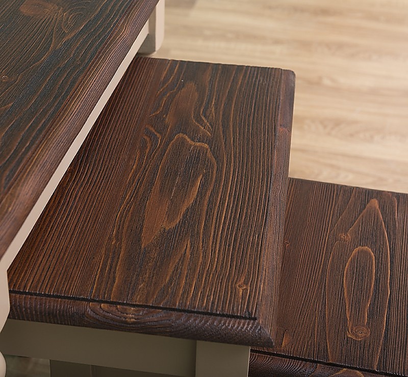 Odkladacie stolíky z poctivého borovicového dreva sa hodia ako do obývacej izby, tak napríklad do predsiene. Povrch stolíka je opatrený farebným náterom v odtieni P088, horná doska je opatrená náterom P083. Použité sú výhradne ekologické farby na vodnej báze. Farby sú kvalitné, certifikované a netoxické, vďaka tomu je možné ich aplikovať aj na nábytok určený do detských izieb.
