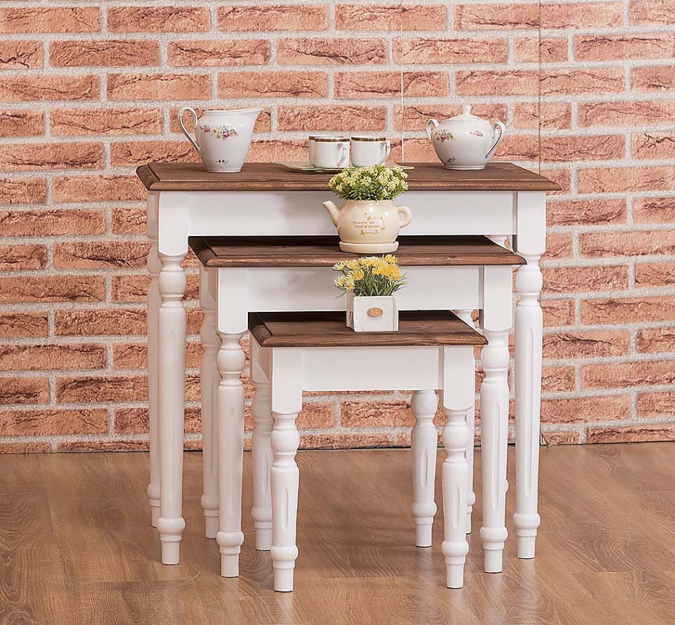 Kombinácia bielej a prírodnej hnedej je skrátka nesmrteľná a hodí sa do interiéru akéhokoľvek štýlu. Vyrezávané nožičky tento stolík fantasticky dolaďujú a dávajú mu nádych rustikálneho štýlu. Ak preferujete tradičné prevedenie a poctivú prácu bez kompromisov, potom je pre Vás nesmrteľný masívny nábytok tou pravou voľbou. Tento výrobok je doručovaný v zmontovanom stave.