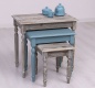 Odkladacie stolíky z poctivého borovicového dreva sa hodia ako do obývacej izby, tak napríklad do predsiene. V tejto super kombinácii sa spojili dva nátery, jeden upravený spôsobom hlbokého kefovania v odtieni P070 a druhý farebný náter v odtieni P008A. Odtieň P008A je upravovaný jemným a precíznym oderom pre vznik efektu patiny. Použité sú výhradne ekologické farby na vodnej báze. Farby sú kvalitné, certifikované a netoxické, vďaka tomu je možné ich aplikovať aj na nábytok určený do detských izieb.