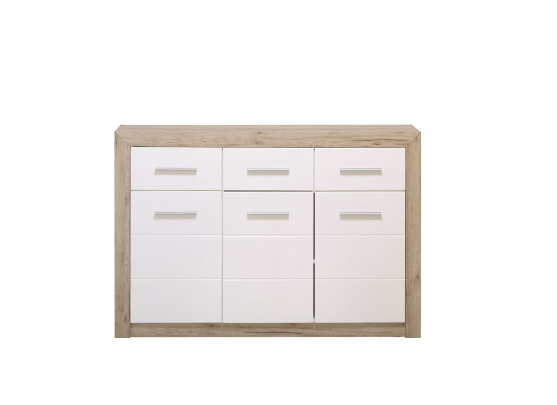Široká kombinovaná komoda Shine - dub sivý/biela