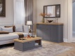 Komoda Artis je vybavená 3 skrinkami a 1 šuplíkom. Pánty aj dojazdy sú opatrené systémom soft-close, ktorý zaisťuje pomalé a tiché dovieranie ako zásuviek, tak dvierok. Čelá komody sú vyrobené z vyrezávanej MDF dosky, lakovanej v grafitovo šedej farbe s matným efektom. Horná doska je taktiež z MDF materiálu a je potiahnutá fóliou v dekore orecha pacific. Štýlovo profilované lišty z MDF sú s hrúbkou 2,5 cm.