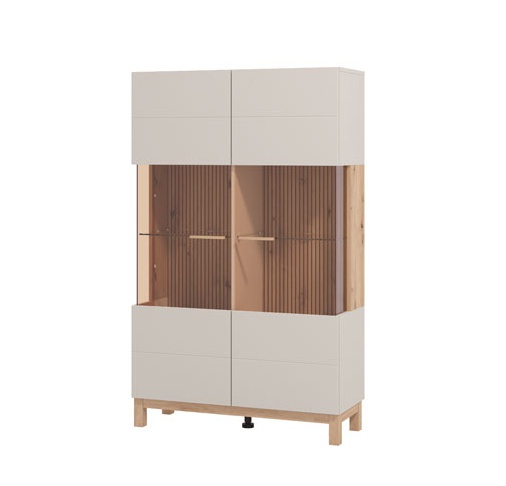 Široká vitrína s osvetlením Xavier - dub, béžová