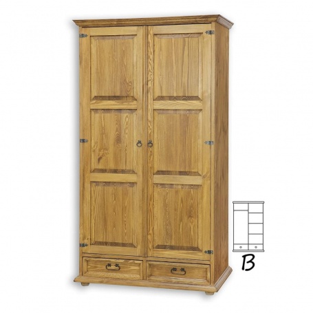 Viete, čo vášmu oblečenie naozaj pristane? Jednoznačne masívne šatník z borovicového dreva. Pustite medzi svoje šaty vôňu prírody. Tešiť vás bude nielen úložný priestor, ale aj samotná skriňu vo vidieckom štýle. Luxusné spracovanie a jedinečný vzhľad zaujmú na prvý pohľad. Kvalitné spracovanie a poctivé borovicové drevo sú zárukou dlhovekosti. Šatníková skriňa, vyrobená z masívneho borovicového dreva, je ošetrená prírodným včelím voskom, ktorý ju povyšuje na luxusný ekologický nábytok. Využitie nájde nielen v spálni, ale aj v izbách, halách a predsieňach. Obdivovať ju budete dlhé roky. Takmer dvojmetrová robustná skriňa znesie časté používanie aj vysokú záťaž. Má veľmi odolnú, robustnú konštrukciu, pritom stojí na dekoratívnych okrúhlych nohách. Veľmi dekoratívny je tiež frézovanie dreva. Úchyty sú kovové, pričom kovanie je ozdobené umeleckou patinou. Súčasťou skrine sú tiež dva praktické šuplíky, v ktorých sa vám ponožky určite nezaparí ... Verzia SLIM má narozdiel od štandardnej kolekcie hrúbku materiálu 2,5 cm namiesto 5 cm. Na bokoch je hladký povrch namiesto 3 oddelených dosiek. Sedliacky nábytok z masívnej borovice ponúkame v niekoľkých odtieňoch morenia, od svetlo bielej až po tajomne čiernu. Vzory si prezrite vo fotogalérii.