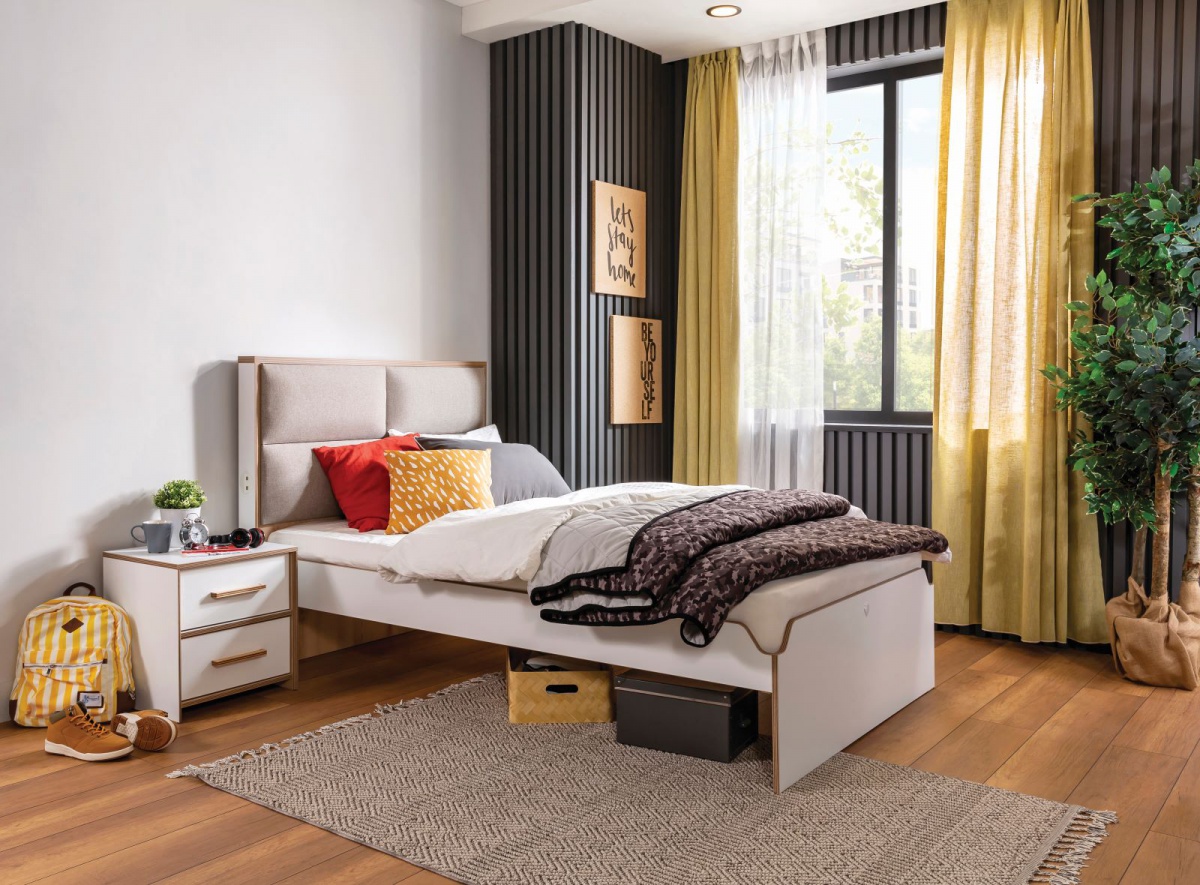 • Študentská posteľ s čalúneným čelom 100x200cm Dylan - 109x115x211cm (š, v, h)