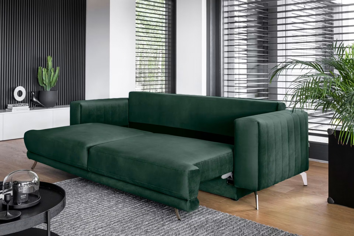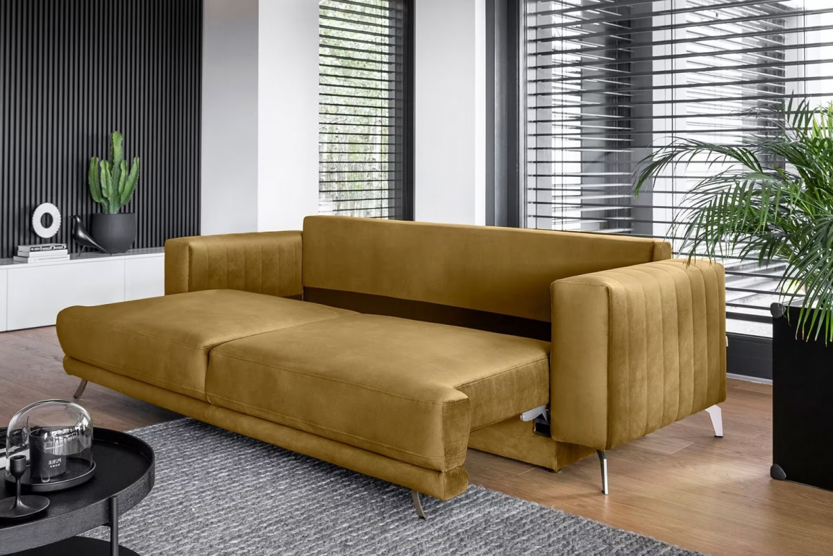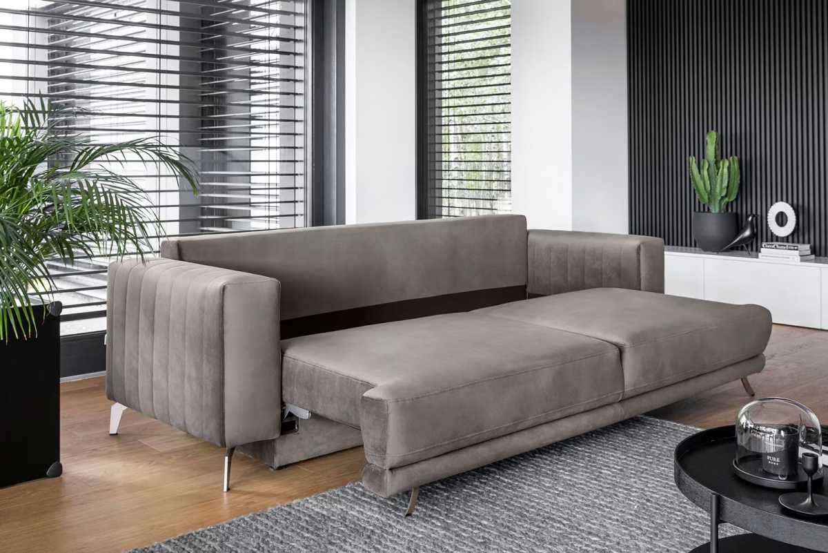 Eliana je štvormiestna rozkladacia pohovka, ktorá premení vašu obývaciu izbu na útulné, maximálne funkčné miesto pre odpočinok aj prespanie hostí. Vďaka automatickému systému DL ju rozložíte plynule a bez námahy na lôžko s rozmermi 215 × 145 cm; praktický úložný priestor schová posteľnú bielizeň aj deky a pomôže udržať poriadok.