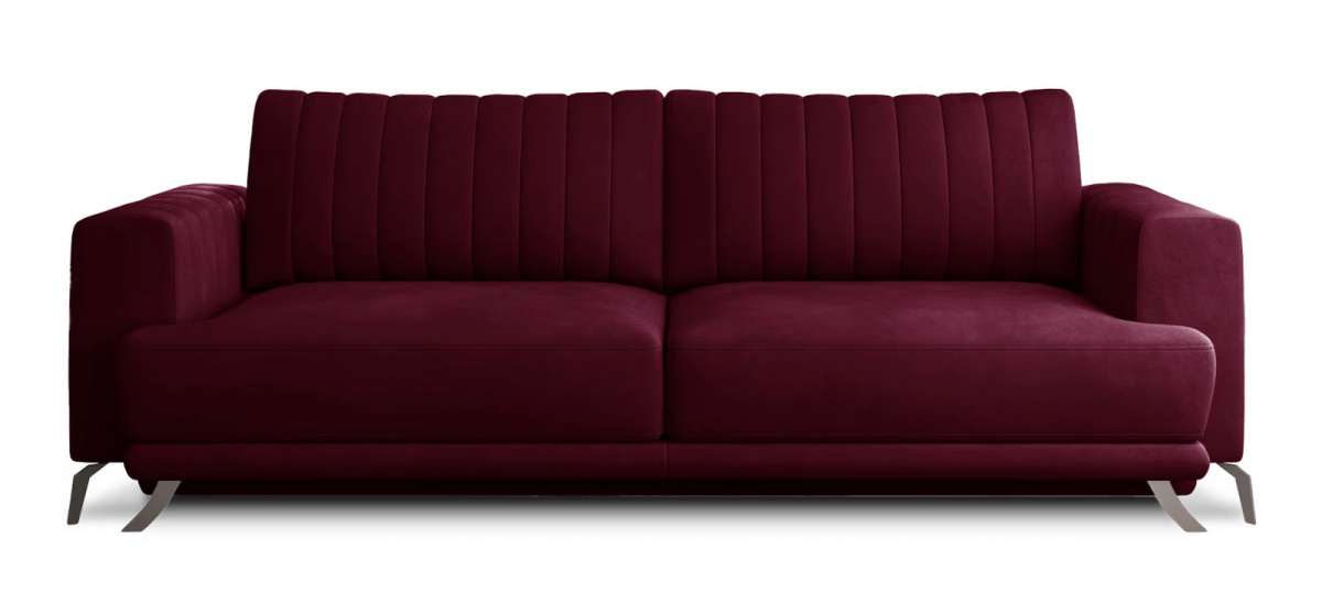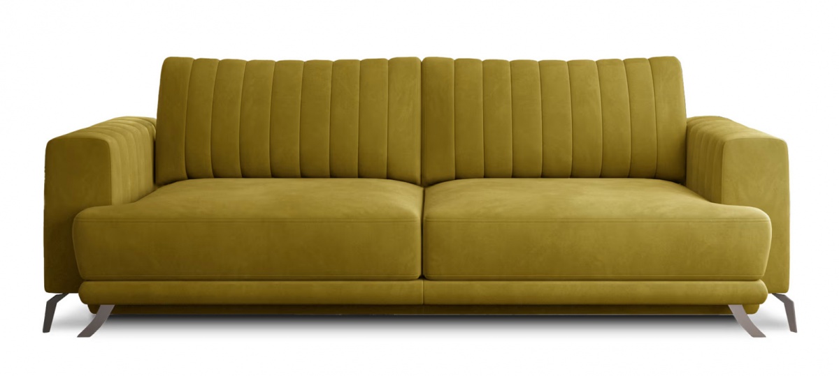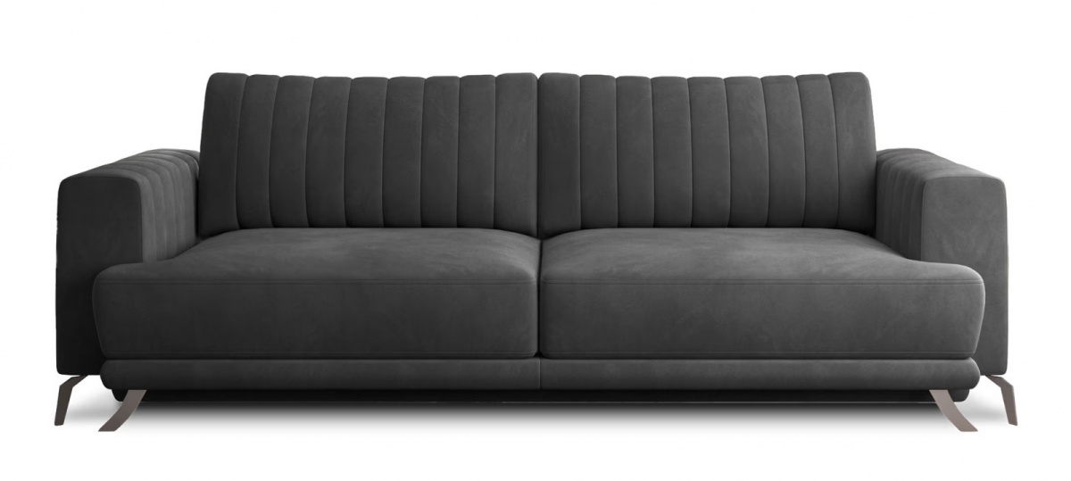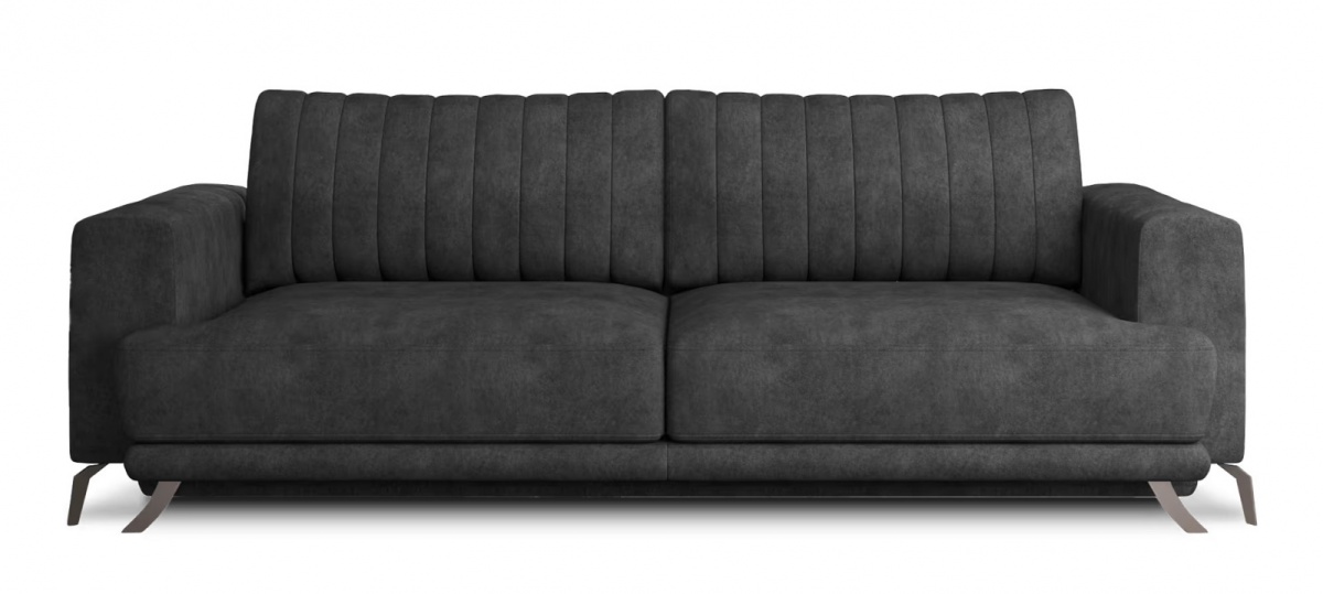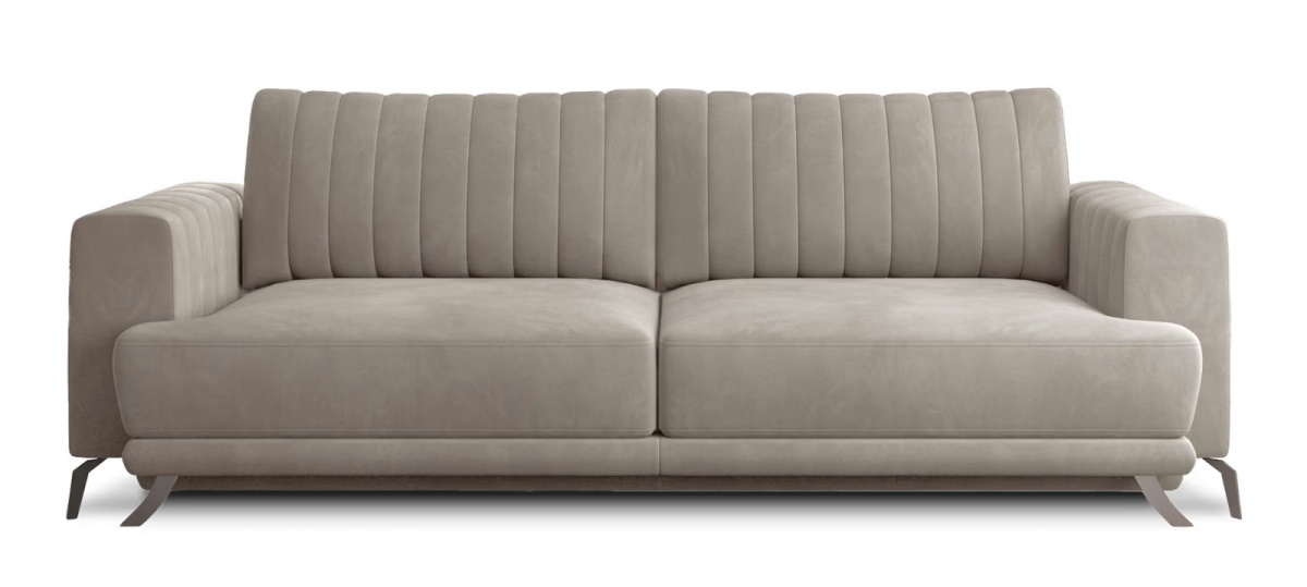 Rozmery pohovky 250 × 95 × 90 cm poskytujú veľkorysý priestor na sedenie. Sedák so šírkou 215 cm, výškou 40 cm a hĺbkou 58 cm spolu s dvoma veľkými, odnímateľnými vankúšmi vytvára pohodlnú oporu chrbta. Vankúše sú súčasťou balenia. Sú plnené penovým granulátom pre prispôsobivú oporu. Vnútorná výplň kombinuje vlnité pružiny so špičkovou penou HR a T25 pre príjemne pružný, avšak stabilný posed bez „presedenia“.