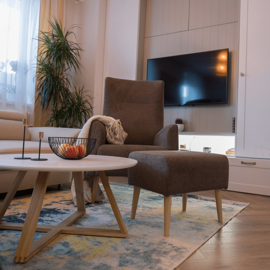 Taburety sa stále viac stávajú súčasťou našich domovov. Okrem toho, že je to veľmi praktický pomocník, keď po príchode domov z práce stačí vyložiť nohy a relaxovať, plní aj dôležitú estetickú funkciu. Taburet SAMY vás zaručene ohromí svojim luxusným a elegantným dizajnom v kombinácii hnedej látky Matana s drevenými nohami vo farbe buk. Krásne dotvorí priestor každej izby, v ktorej sa ho rozhodnete mať uložený av kombinácii s kreslom SAMY sa stane vašim najobľúbenejším miestom na relax a odpočinok. Jeho praktickosť oceníte aj v prípade väčšej návštevy, kedy ho jednoducho použijete ako plnohodnotné miesto na sedenie. Taburet SAMY je presne to, čo hľadáte a jeho kúpu určite nebudete ľutovať.