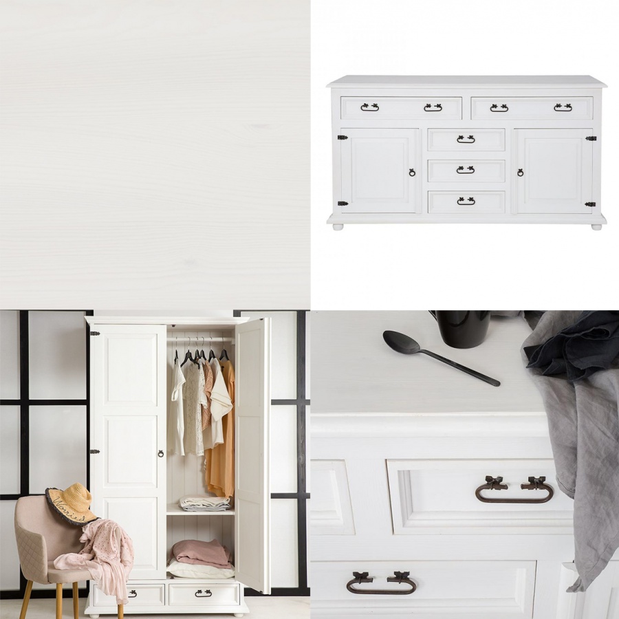 Malá komoda sa zďaleka nehodí len do obývacej izby pod televíziu. Svoje miesto nájde takmer v každej miestnosti. Sedliacky nábytok ponúkame v niekoľkých odtieňoch morenia, od svetlo bielej až po tmavo hnedú. Navyše môžete zvoliť tiež preferovaný druhý odtieň, ktorý sa použije na hornú dosku nábytku. Vzory si prezrite vo fotogalérii. Vo vrchnej časti stránky si v poli "Vybrať variantu" vyberte odtieň korpusu. Chrbát nábytku je z drevovláknité dosky (preglejky), ktorá nie je v rovnakom odtieni ako korpus.
